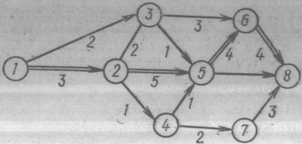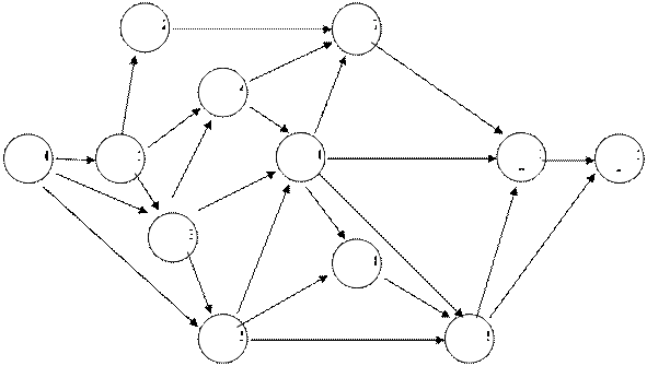Изменим нумерацию событий в соответствии с их расположением на графике и получим упорядоченный сетевой график 3. Следует заметить, что нумерация событий, расположенных в одном вертикальном слое, принципиального значения не имеет, так что нумерация одного и того же сетевого графика может быть неоднозначной.