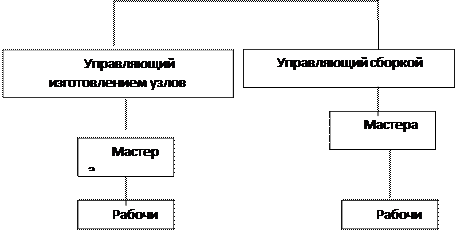 На рис.5 представлена схема функциональной структуры управления. Эта структура появилась в результате разделения управленческого труда по принципу его функциональной специализации. При такой структуре управление осуществляется всем предприятием в целом и по каждой функции в отдельности. Для выполнения каждой функции в системе создается специальное подразделение, деятельность которого направлена на решение специфического круга своих задач