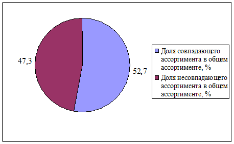 Рисунок 2.15 – Структура ассортимента холодильников «В-Лазера» по отношению к ассортименту «МегаСпейса»