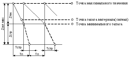 Страховым запасом Zстр называется часть складского запаса материала, предназначенная для обеспечения производства в случае отсутствия текущего значения, а также непредвиденных отклонений от нормальных условий снабжения
