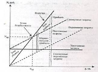 Умножив величину критического объема продукции в количественном выражении на цену, получим выручку от продаж в точке безубыточности (Nкр):