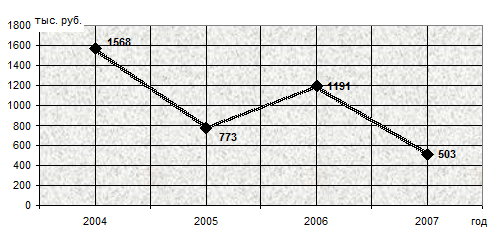 Графически динамика дебиторской задолженности ООО «Машснаб» за 2004–2007 гг. представлена на рис. 2.