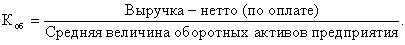 2. Коэффициент оборачиваемости оборотных активов предприятия (отношение выручки-нетто по оплате к средней величине оборотных активов) - характеризует скорость оборота капитала, вложенного в оборотные активы: